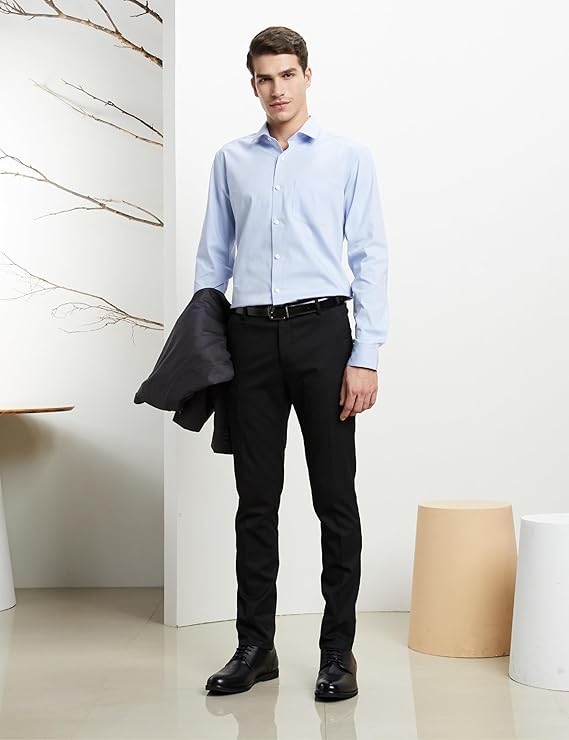 These formal shirts are made out of 100% double ply premium cotton material with liquid ammonia and moisture cure treatment that will resist wrinkles, add lustre and make the material breathable. The superlative craftsmanship with semi-cutaway collar, French placket, shanked and wrapped buttons, removable collar bones, and high quality interlinings would add on to the finesse of the garment. You may pair it up with a formal trouser and a blazer for a sharp formal look….. or roll up the sleeves and wear it with a chino .